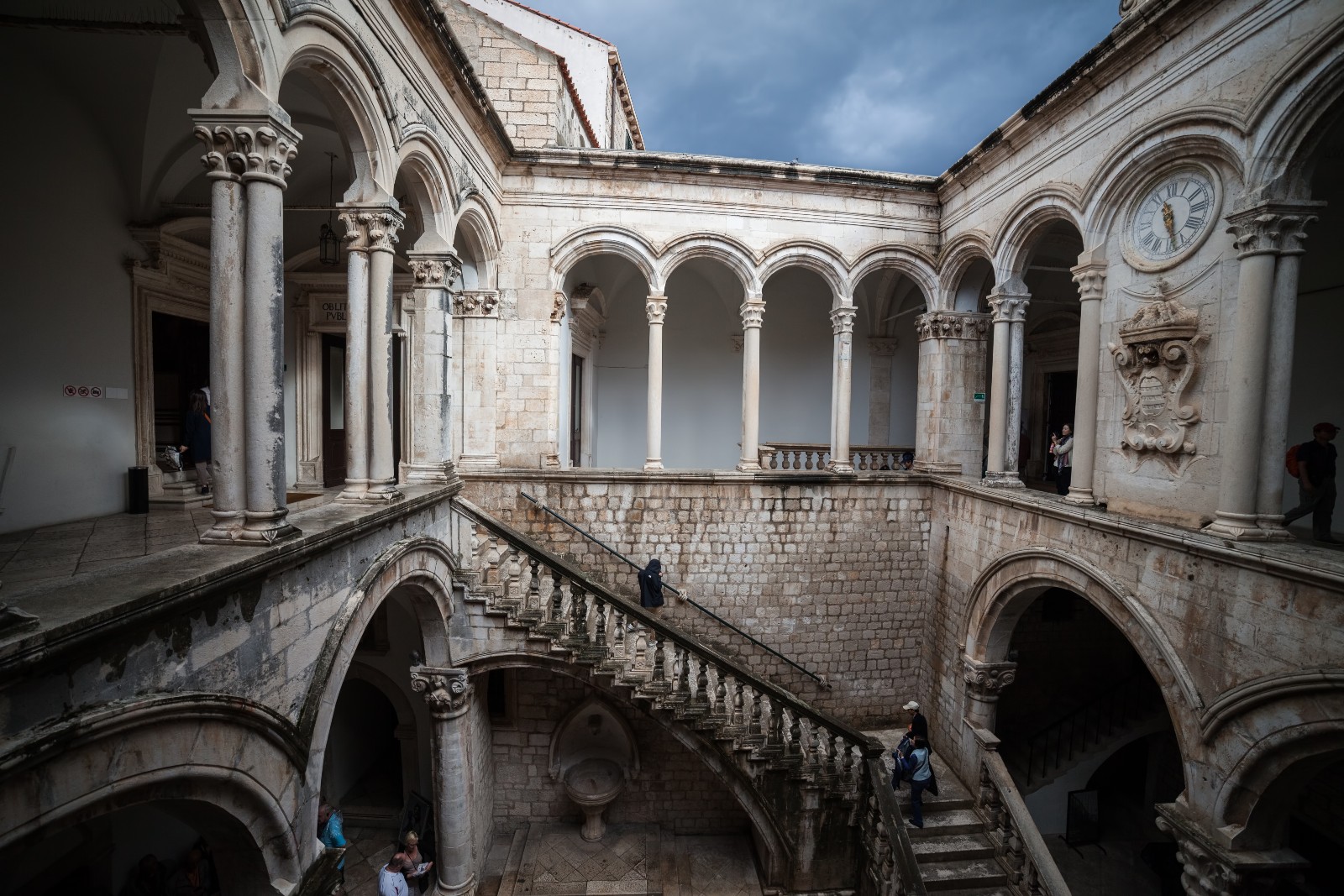 Le palais Sponza est un magnifique édifice Renaissance du XVIe siècle avec une cour intérieure et une élégante loggia reposant sur six colonnes. À l’origine, il s’agissait d’un poste de douane, puis d’un hôtel des monnaies. Aujourd’hui, c’est le luxueux siège des archives d’État. Le palais intérieur ne se visite pas, mais la cour intérieure est utilisée pour des événements et des présentations officielles.