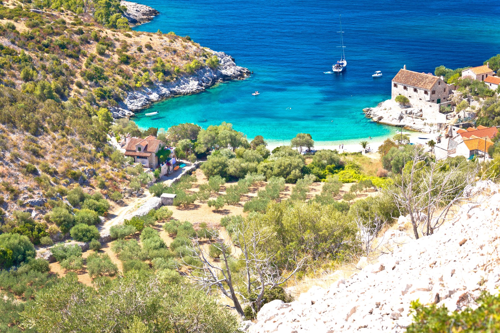 Le petit village d’Ivan Dolac se trouve à environ une heure de route de la ville de Hvar, entouré de pentes abruptes couvertes de pins et de vignobles. Le paysage est certes très beau, mais c’est la plage qui rend ce village incontournable. Elle est constituée de galets presque aussi fins que le sable, ce qui signifie un bon confort.