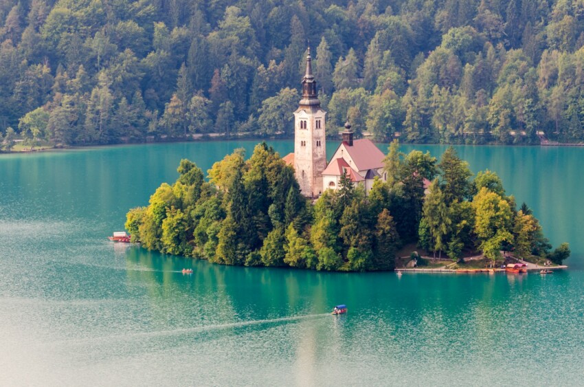 Au centre du lac pittoresque se trouve la petite île de Bled, la seule île naturelle de Slovénie. L’église Notre-Dame du Lac a été construite sur l’île, qui aurait été l’emplacement d’un temple dédié à Živa, la déesse païenne de la vie et de la fertilité. L’édifice religieux a subi plusieurs transformations et le style baroque actuel provient de travaux effectués au XVIIe siècle.