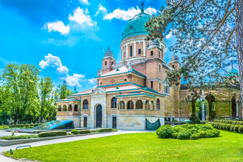 Le cimetière de Mirogoj est l’un des plus beaux parcs monumentaux d’Europe, une véritable galerie d’art à ciel ouvert. C’est l’architecte Herman Bollé qui l’a conçu et caractérisé par une arcade néo-renaissance de 500 mètres de long, 20 dômes vert tilleul et plusieurs pavillons, le tout mêlé à une riche végétation. Situé sur les pentes du mont Medvednica, le parc est entouré de murs épais et abrite une galerie de sculptures créées par des artistes croates. Parmi les œuvres les plus intéressantes figurent les tombes du poète Petar Preradovic et de Vladimir Bercic, créées par Mihanovic.